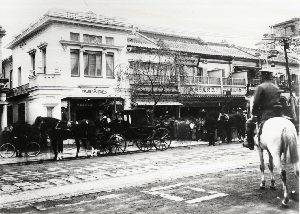 〈銀座4丁目表通りに出店する御木本真珠店 / 1906年(明治39年)/ 写真:ミキモト真珠島〉