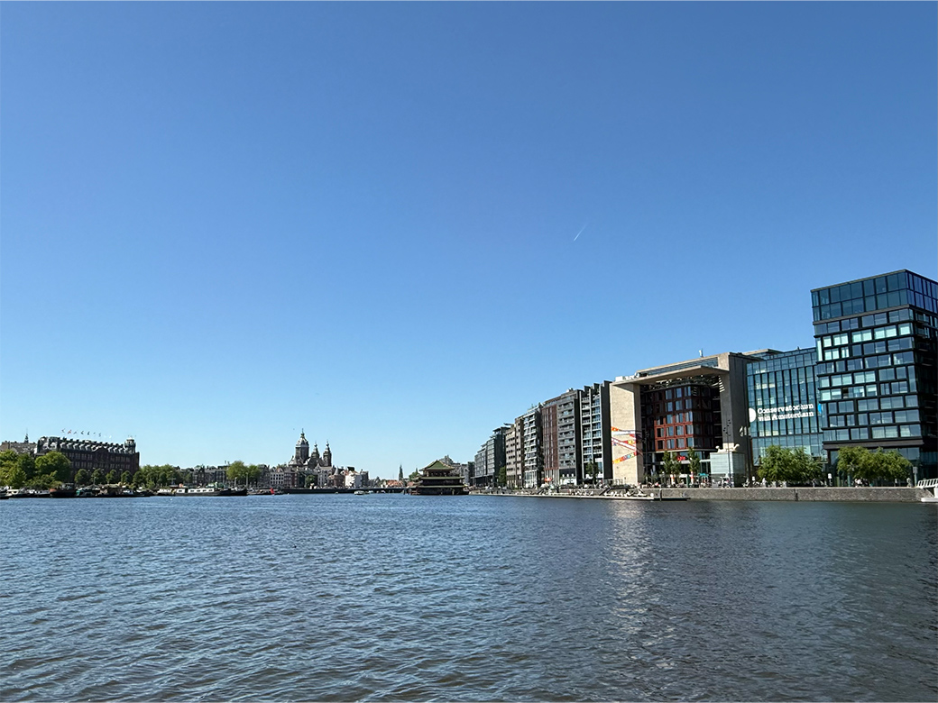 アムステル川沿いからの眺望は、100年以上の建築史を一堂に臨むことができる。