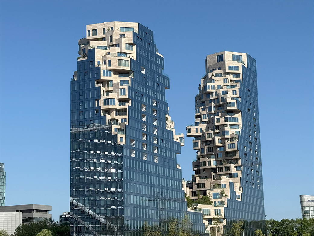 アムステルダムの南側、ザウト(Zuid)地区に位置する。オランダ随一の金融拠点として都市開発が進むこのエリアに建つ同建築は、地層を思わせる外装と、建物全体に施された緑化テラスが特徴で、オフィスや住宅、商業施設が入る。都市と自然の共存を体現し、環境と経済の調和を目指す都市づくりの一例となっている。