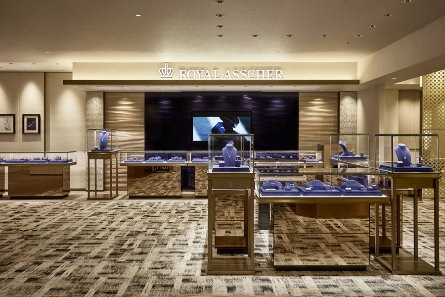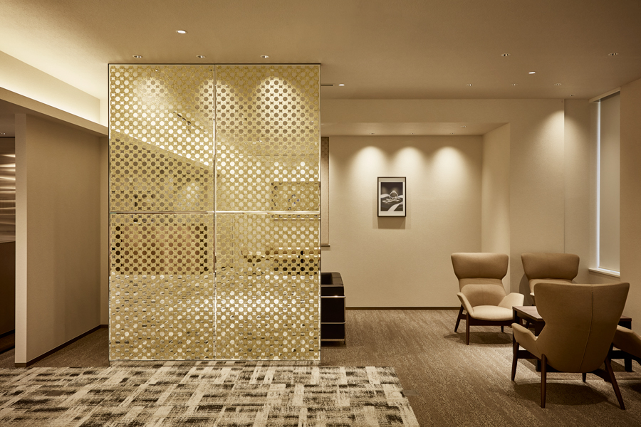 さらに、唐紙師・千田長右衛門によるアート作品「ミズハ(舞鶴龍亀)」と「季風の道(きふのみち)」をインテリアに取り入れることで、「日本の伝統美と、ヨーロッパの洗練の融合」をはかり、ダイヤモンドの輝きをより一層華やかにする煌めきの空間演出を設えています。