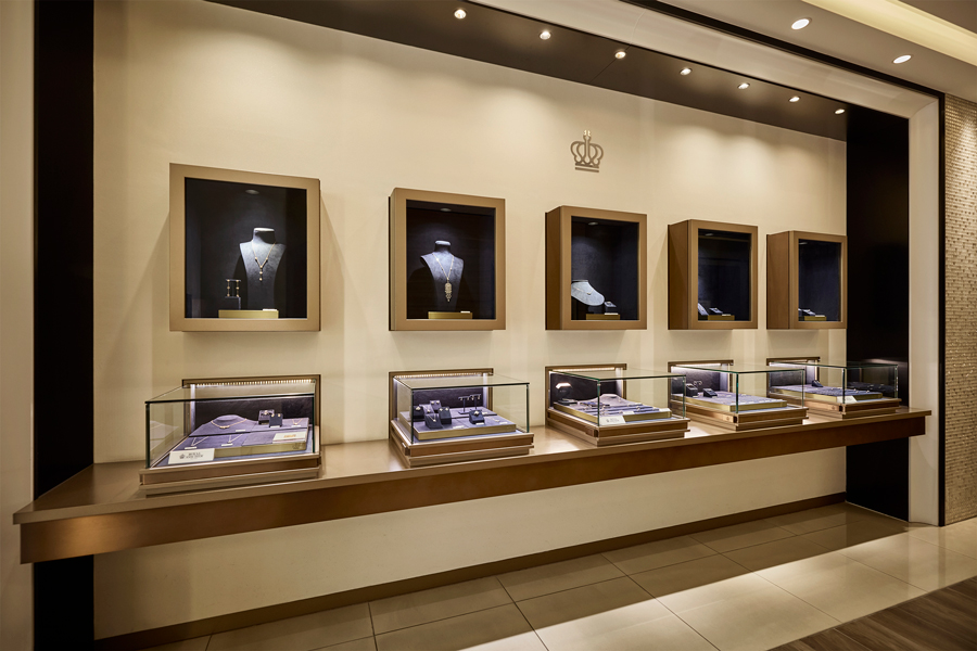 ベージュカラーを基調に、ブランドカラーであるロイヤルブルーを採り入れた新しい店舗デザインを導入。日常使い出来るファッションジュエリー、ハイジュエリー、ブライダルジュエリーをゆっくりとご覧いただける空間となっており、ブランドのコンセプトを発信する旗艦店の顔となります。